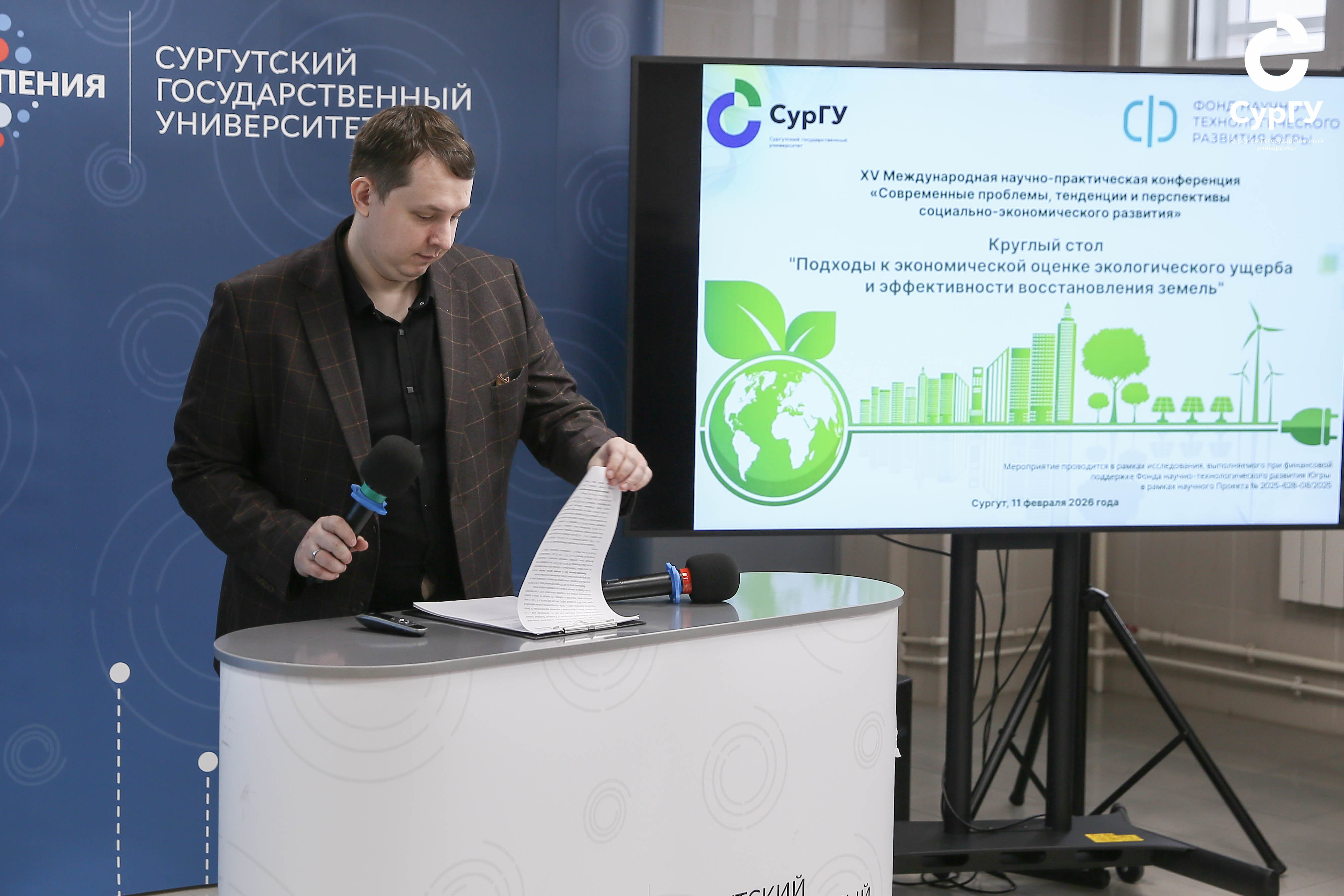 В Сургутском госуниверситете состоялся круглый стол «Подходы к экономической оценке экологического ущерба и эффективности восстановления земель». Мероприятие проводилось в рамках проекта «Комплексная экономическая оценка экологического ущерба и эффективности восстановления земель в нефтегазовом регионе на основе принципов ESG», поддержанного Фондом научно-технологического развития Югры (№ 2025-628-08). Участники рассмотрели современные методы расчета ущерба, правовые механизмы рекультивации и финансовые аспекты возврата территорий в хозяйственный оборот.