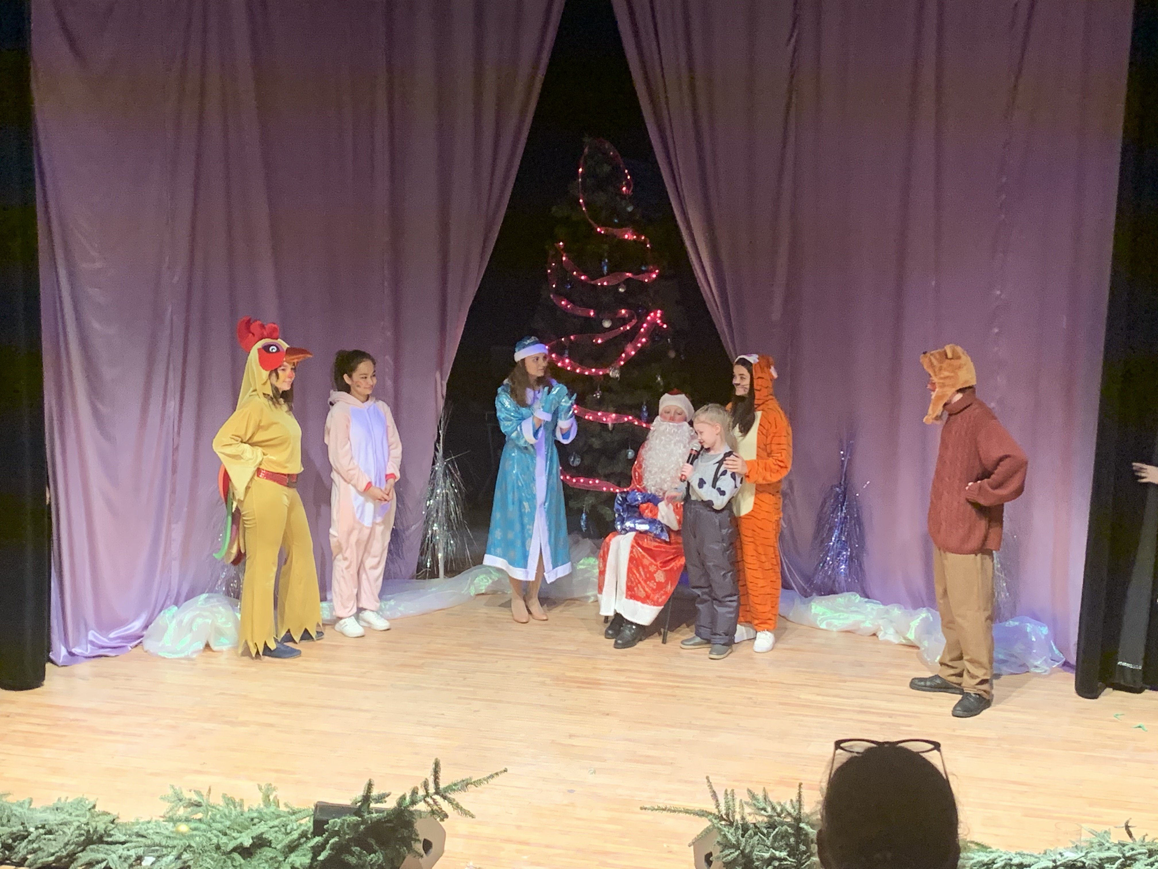 В новогоднем спектакле участвовали студенты волонтёры Борисенко Анастасия, Алиева Гунель, Саклакова Анастасия, Барсуков Даниил, Салихова Иминат, Ахматова Сазида, Доминова Анастасия. Сатритдинова Илюза, Клыкова Алина, Алиева Гунель, Михальчук Ксения. Талантливая игра студентов на сцене покорила маленьких зрителей и их родителей. Дед Мороз и Снегурочка подарили новогодние подарки всем детям.