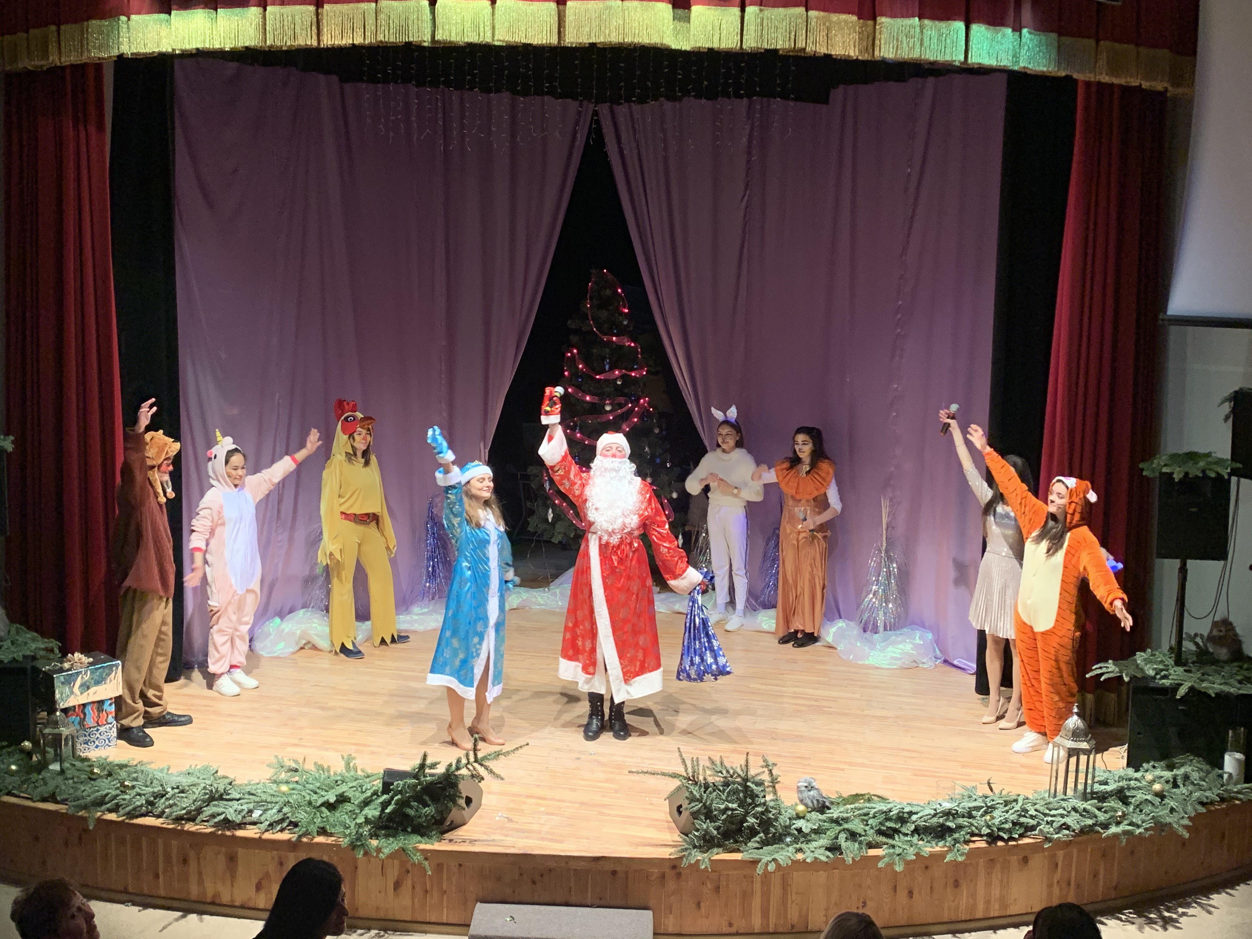 В зрительном зале вместе с детьми артистов поддерживали и создавали атмосферу праздника студенты-аниматоры Сейдина Алпысова, Пашаева Айдан, Кочиева Диана, Алиева Манижа, Николаева Полина.