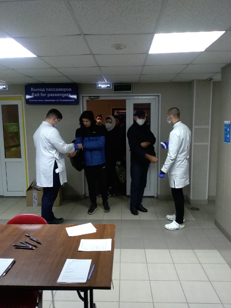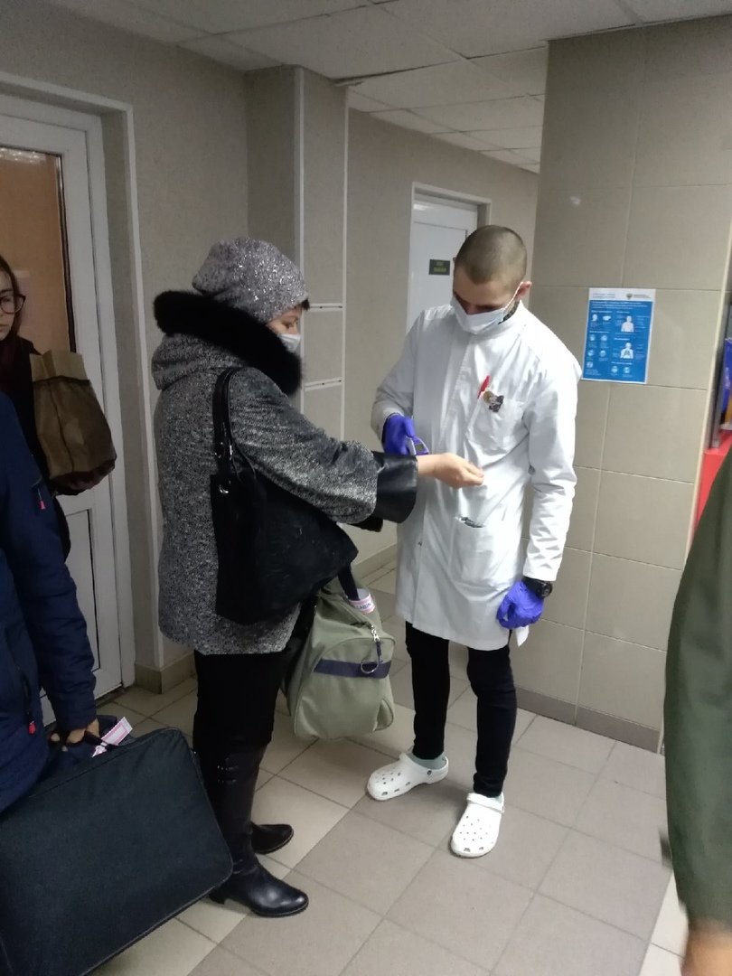 Будущий врач скорой помощи, а ныне – студентка направления «лечебное дело» Анастасия Солтыс рассказала, что их 6-часовое дежурство выстроено по следующим сменам: 8.00–14.00, 14.00–20.00, 20.00–2.00, 2.00–8.00. «Наша основная задача – измерение температуры тела пассажиров по прилету рейсов с помощью бесконтактных термометров. Так, сегодня уже проверили пассажиров, прибывших из Тюмени и Новосибирска», – сообщила Настя.